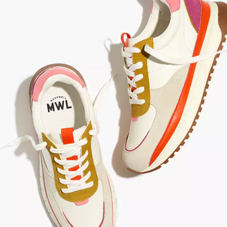 Bottom third options: Madewell sneakers, Walmart sandals, Baublebar anklets.